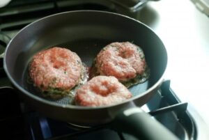 フライパンの大きさに対してハンバーグを詰めすぎないことも重要です。余裕を持って焼くことで、熱が均一に伝わり、きれいに焼き上がります。